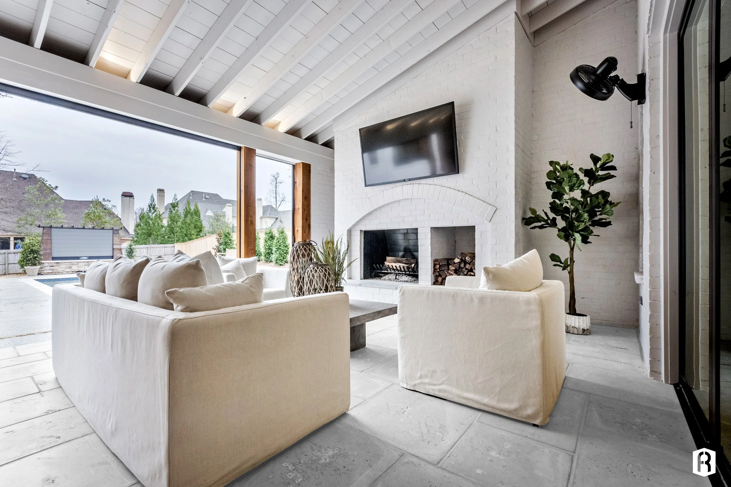 FireRock Pavers, Isokern Fireplace, Old Reclaimed Brick in Hard Tans and Outdoor Kitchen equipment
